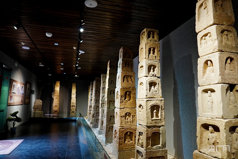 “20世纪50年代,正在沁县南涅水村发觉了1100余件窖藏石刻,雕镂年代历经北魏至宋朝520余年,最早的北魏石刻距今1500余年。馆内石刻制像形制奇特,此中尤以可挪动的‘塔柱型制像’闻名。我们的博物馆也被誉为中国平易近间石刻第一馆。”沁县南涅水石刻博物馆的员,正正在为旅客们引见这些宝贵藏品的故事。