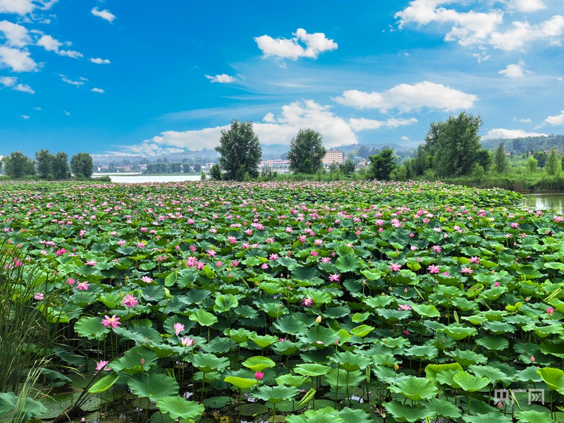 盛夏时节,安步正在沁县南湖岸畔,清冷的风吹动满湖盛放的荷花,成群的水鸟正在湖面擦过,飞入浓密的芦苇荡中,人们正在湖边安闲垂钓,仿佛一幅江南水乡画卷。